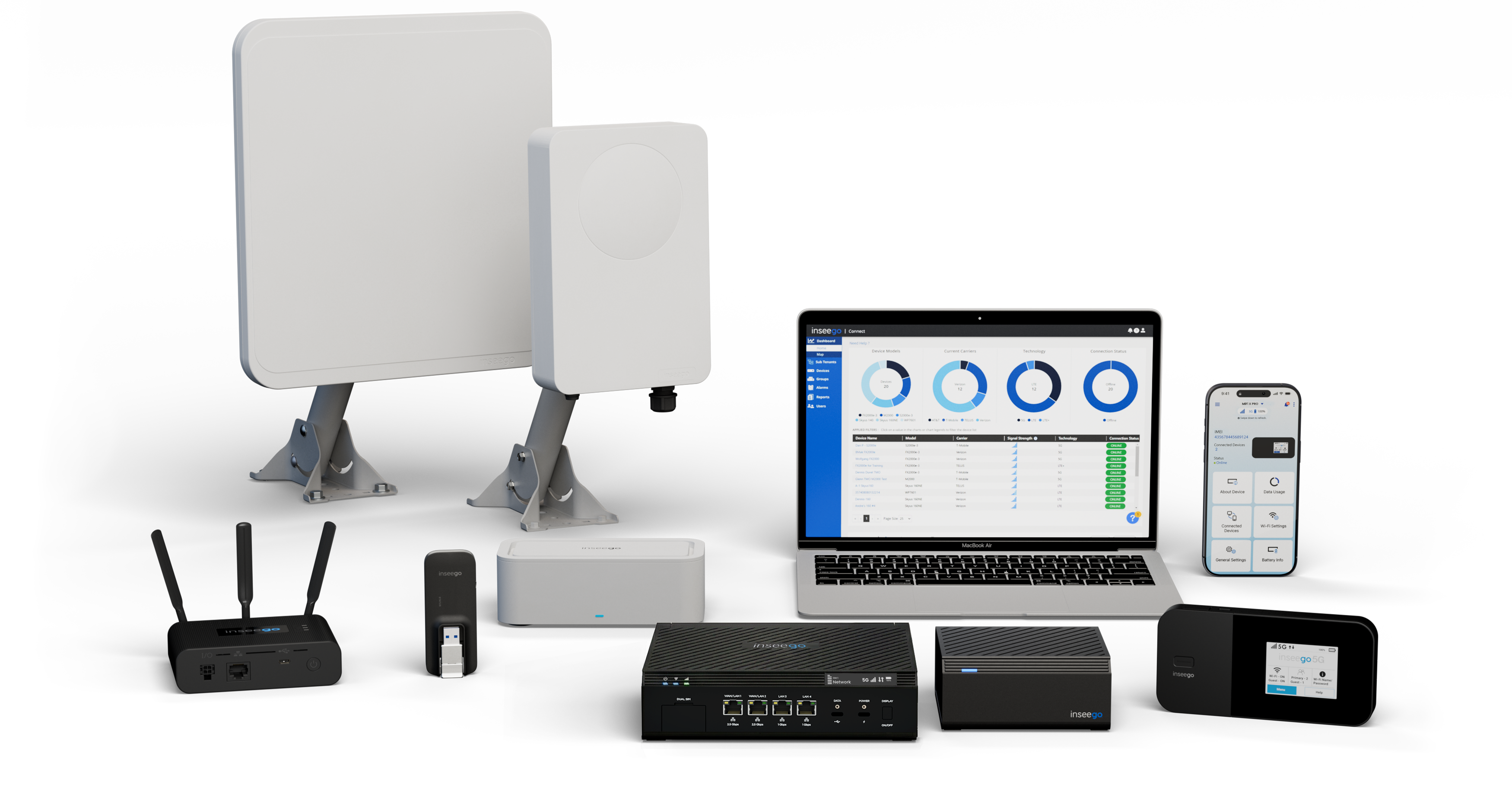 At Inseego, we offer more than just 5G connectivity. We have also developed cutting-edge cloud management software. Our Inseego Connect™ solution provides a secure remote connection to deployed Inseego devices, network tunneling, URL filtering, network segregation, and prioritization of network traffic. Access to distributed sites and branch locations without having to send out physical resources is a game changer for productivity and business efficiency!
