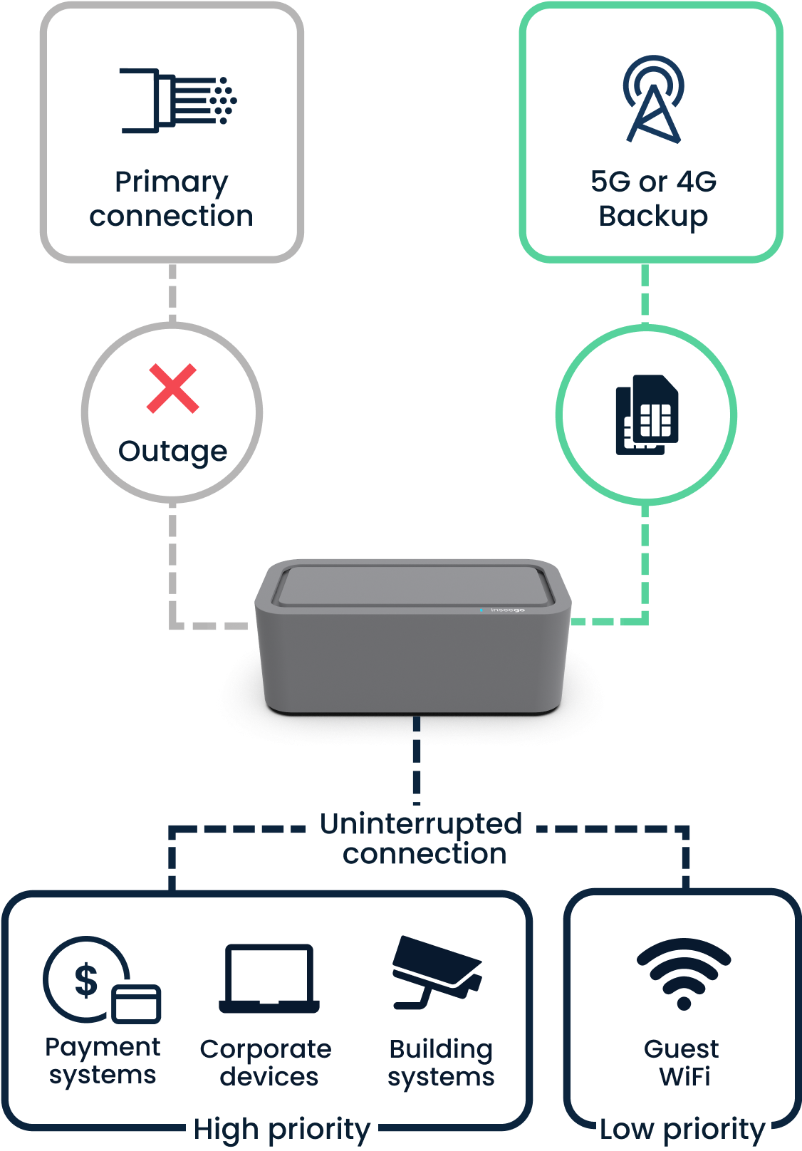 Inseego’s business-grade cellular routers allow you to retain WAN-like functionality during an outage at a very reasonable cost.
