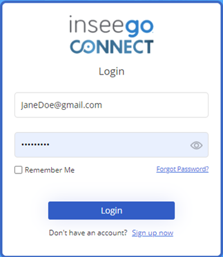 1. To login to Inseego Connect after the initial sign-up process, go to connect.inseego.com. The interface login screen appears.