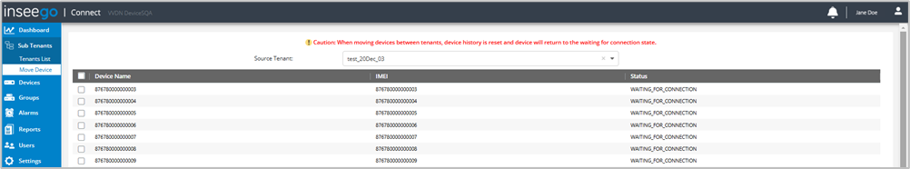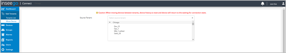 Use the Move Device page to move a device to a different tenant/subtenant.