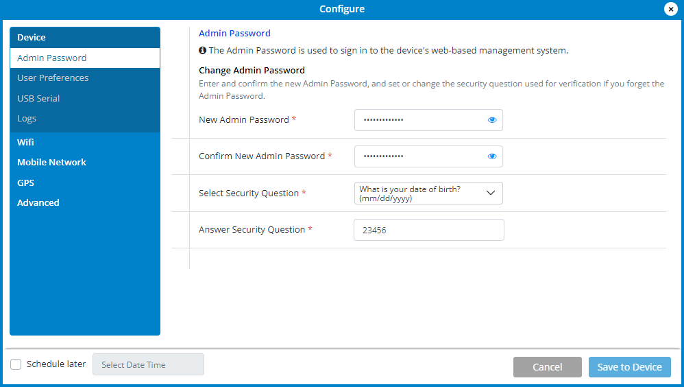 1. Check the checkbox next to the device name and click the Configure button. The Configure dialog appears.