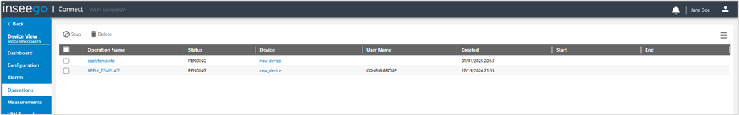 command. You can stop pending operations using the Stop button. - SCHEDULED - The operation is scheduled. If the device is offline at the scheduled time, the operation will change to pending. Click on the operation name to view changes, run the operation now, or stop the operation.