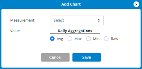 b. Select a Value (Avg, Min, Max, or Raw) to display the measurement in the chart.