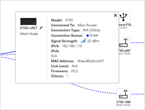 Name: The name of the client or mesh node. You can edit the name using the pencil icon