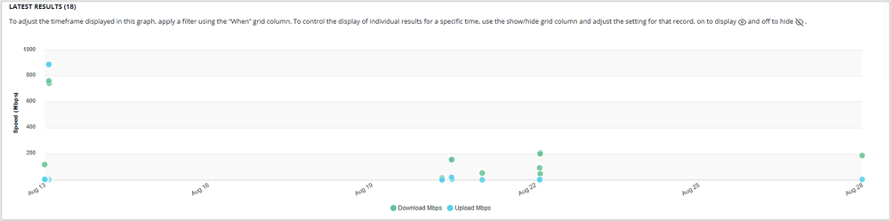 - Click on Show or Hide next to a result in the Show/Hide column of the table below to select which speed test results to remove or add to the graph.