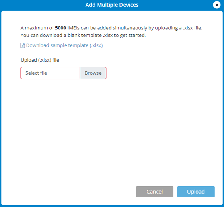 You can add multiple devices to Inseego Connect by uploading an .xlsx file.