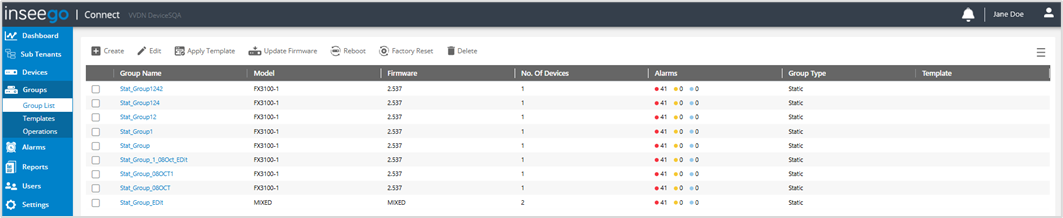 - Static - Any logical grouping of a fixed set of devices. You can use static groups to view group level dashboards, define alarms, and run reports on a specific set of devices. NOTE: A device can belong to multiple static groups.