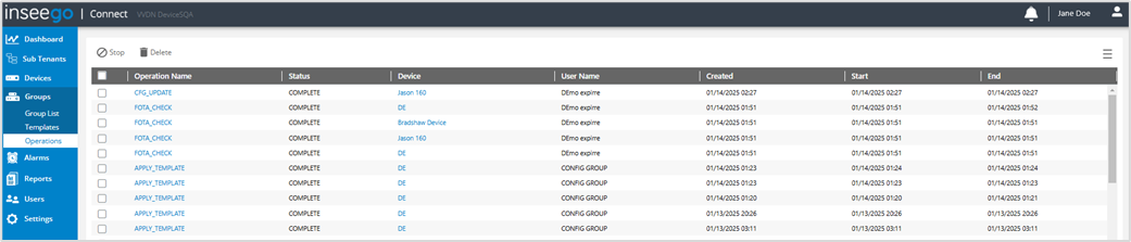 NOTE: You can click on a device name to access a device-specific dashboard, including an Operations page that displays operations for only that device.