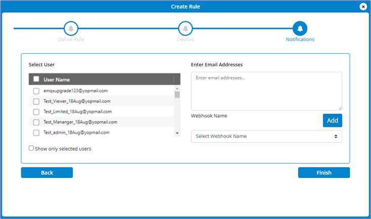 13. Enter email addresses for any additional users you want to receive alarms for this rule.