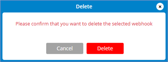 1. Check the box next to the webhook(s) and click the Delete button. A confirmation dialog appears: