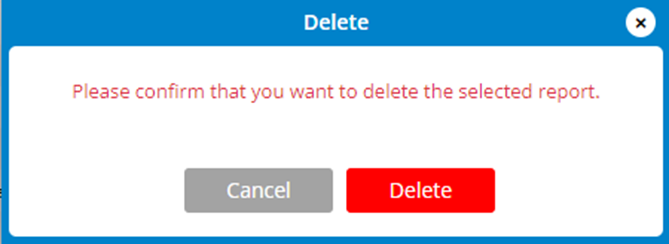 1. Check the box next to the report name and click the Delete button. A confirmation dialog appears: