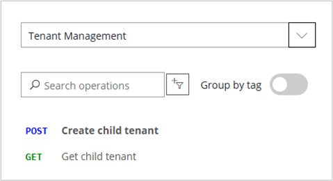 | Get child tenant | Retrieves child tenants based on a parent tenant name. |