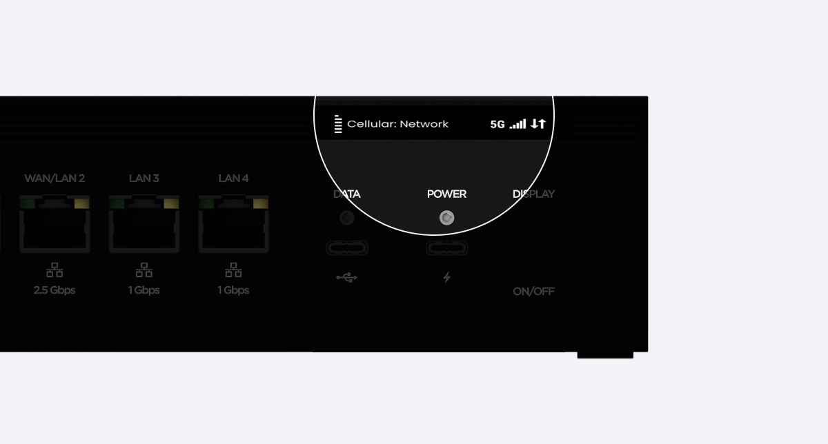 - Intuitive on-the-go setup: The FX4200 features a display screen that offers signal information and includes a battery backup. This allows staff to walk around with the device and position the router for the best signal and connect it "on the go," without needing hardwired power or advanced testing tools during the initial setup phase.